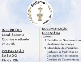 Início das inscrições da Catequese será dia 8 de fevereiro, de 9h às 11h30,…