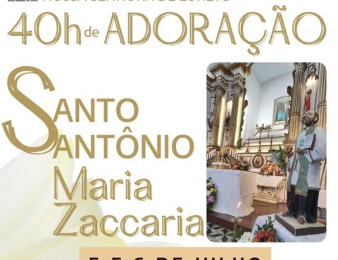 Nos dias 05 e 06 de julho teremos a Missa e Adoração das 40 horas. Confira a programação completa: