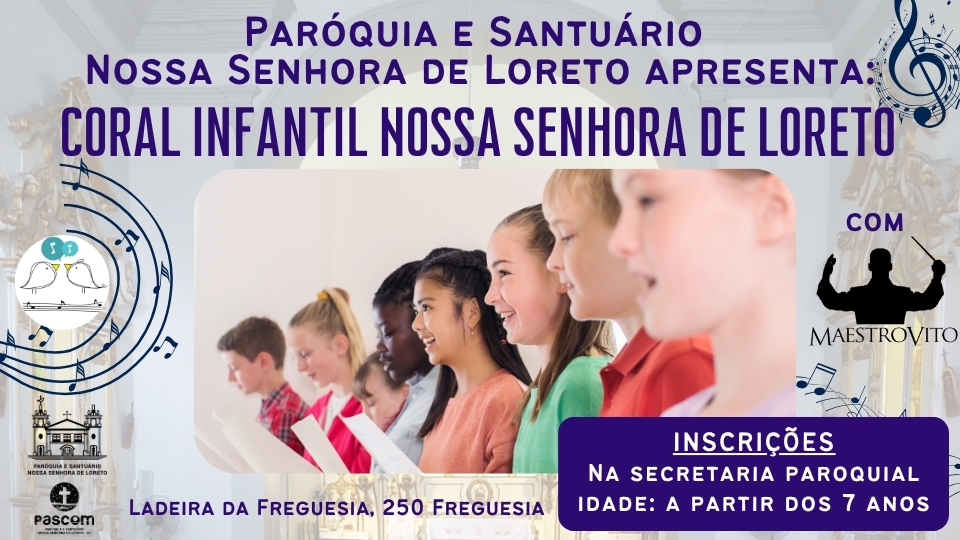 A Paróquia e Santuário Nossa Senhora de Loreto convida as crianças para participarem do Coral Infantil Nossa Senhora de Loreto, sob a regência do Maestro Vito.