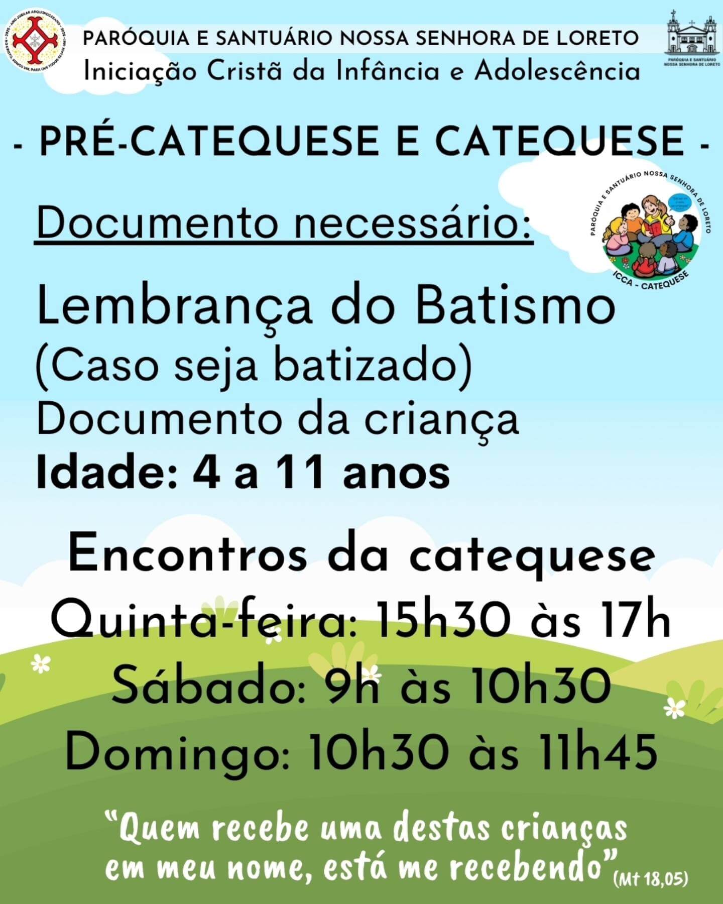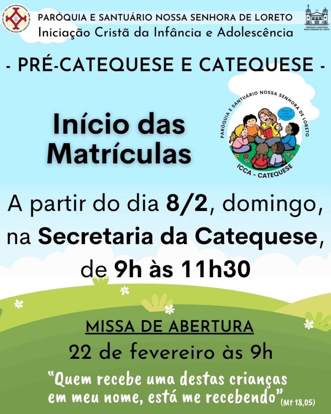 Início das inscrições da Catequese será dia 8 de fevereiro, de 9h às 11h30, na Secretaria da Catequese.