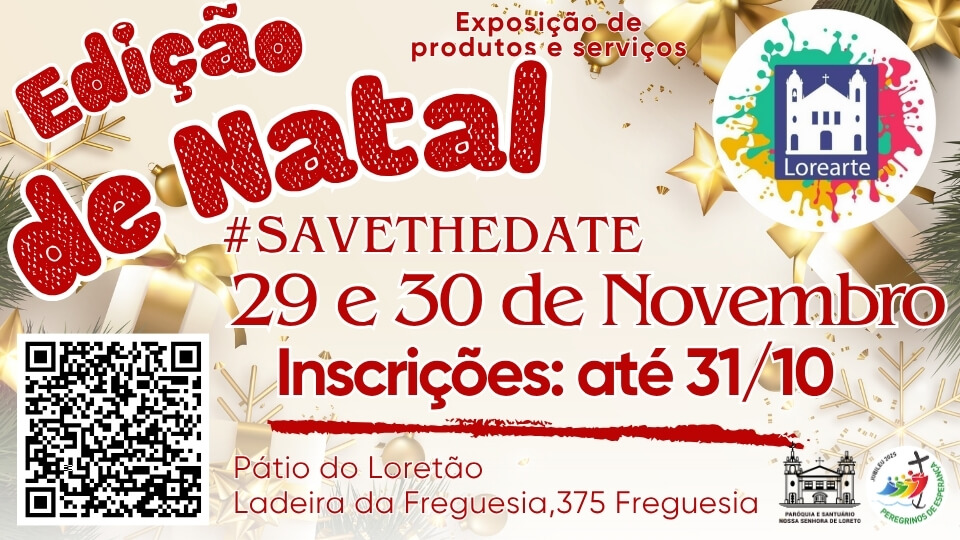 Prezados paroquianos e paroquianas, nos próximos dias 29 e 30 de Novembro teremos mais uma edição da Lorearte em comemoração ao Natal.