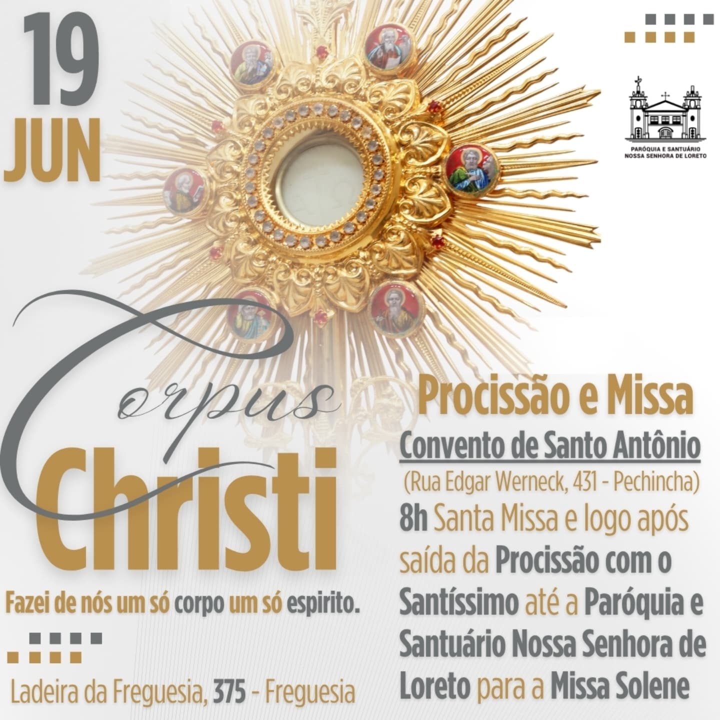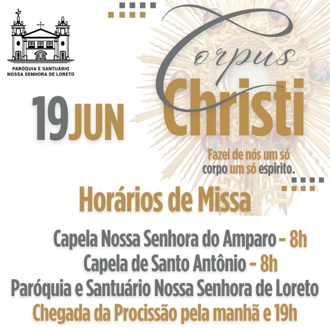 Convidamos você e sua família para celebrar conosco a Solenidade de Corpus Christi, um momento de fé, adoração e gratidão pela presença real de Jesus na Eucaristia.